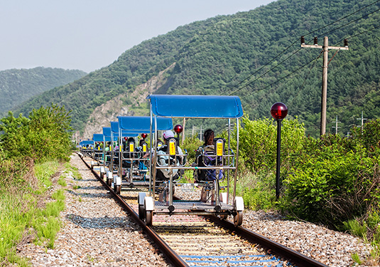 산과 강이 어우러진 양평의 용문~원덕까지 3.2km를 시속 15km로 즐길 수 있는 철로자전거입니다. 봄에는 생명이 움트는 따사로운 햇살과 파긋파릇한 연녹색의 자연을 만끽할 수 있으며, 여름에는 시원한 물소리를, 가을에는 우리나라 명산인 용문산 줄기의 형형색색 단풍을, 겨울에는 눈부시게 하얀 눈꽃을 경험할 수 있는 코스입니다.